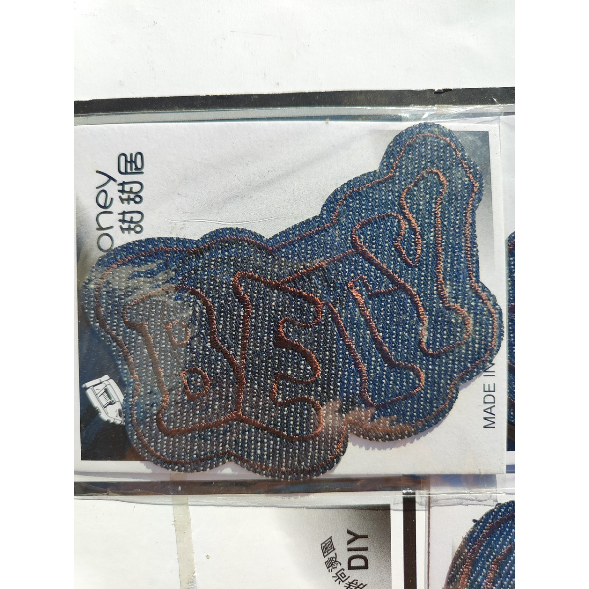 Нашивки клейові для верхнього одягу, виробник Китай. Розмір нашивки 100/60 мм. Нашивка на паперовій картинці у поліетилені.