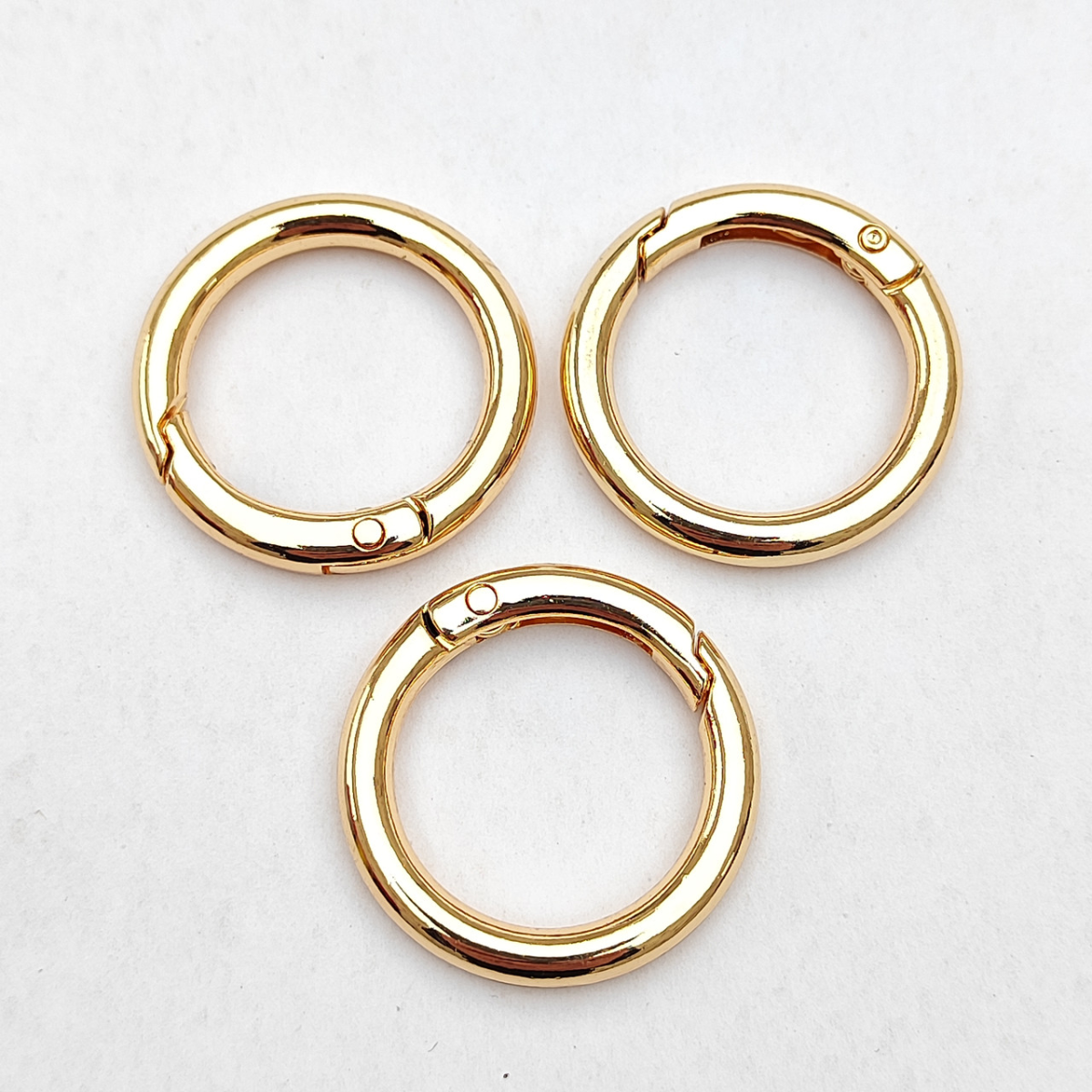 Кільце карабін 3.5 см, колір золото, матеріал – цинковий сплав, не іржавіє.